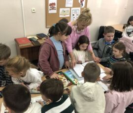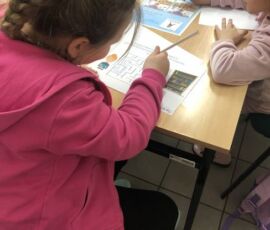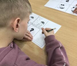 Uczniowie podczas wizyt w bibliotece uczestniczyli także w warsztatach podczas których wypełniali karty pracy utrwalając swoją wiedzę o bibliotece i książce oraz tworzyli komiks, uzupełniając kadry rysunkami.