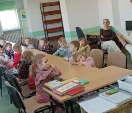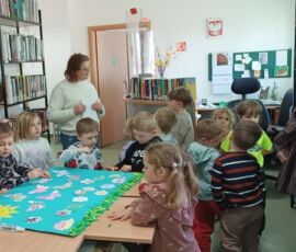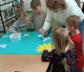 10 kwietnia 2026 r. w Filii PBW w Kluczborku odbyły się kolejne zajęcia czytelnicze z elementami biblioterapii z udziałem grupy przedszkolnej z NP „Tęczowa Dolina” w Kluczborku. Warsztaty pt. „Czarodziejskie imiona” z cyklu „Bajeczne mikstury na różne problemy” poświęcone były zasadom savoir-vivre’u. Dzieci uczyły się i przypominały sobie zasady zachowania w różnych miejscach i sytuacjach, zwiększały swoją świadomość na temat kultury osobistej, wyrabiały wrażliwość wobec innych ludzi i środowiska. Przedszkolaki wykazały się dużą wiedzą w tym zakresie i potwierdziły to swoim zachowaniem, wysłuchały bajkę oraz wierszy związanych z tematem i jak zawsze z wielkim zapałem wykonały prace plastyczne – tym razem wspólnie przygotowały plakat.