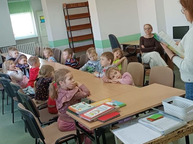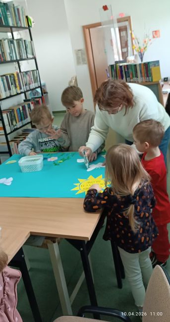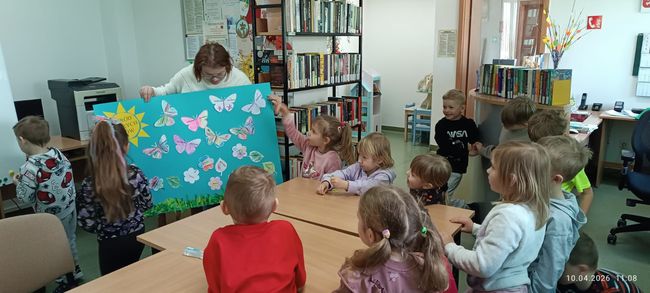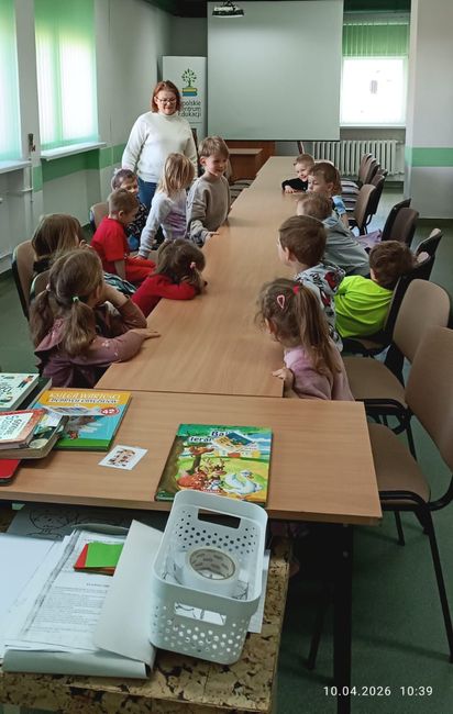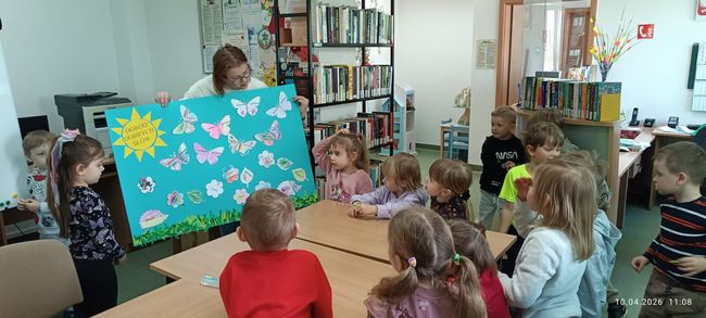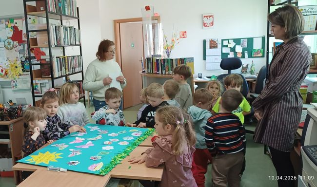 10 kwietnia 2026 r. w Filii PBW w Kluczborku odbyły się kolejne zajęcia czytelnicze z elementami biblioterapii z udziałem grupy przedszkolnej z NP „Tęczowa Dolina” w Kluczborku. Warsztaty pt. „Czarodziejskie imiona” z cyklu „Bajeczne mikstury na różne problemy” poświęcone były zasadom savoir-vivre’u. Dzieci uczyły się i przypominały sobie zasady zachowania w różnych miejscach i sytuacjach, zwiększały swoją świadomość na temat kultury osobistej, wyrabiały wrażliwość wobec innych ludzi i środowiska. Przedszkolaki wykazały się dużą wiedzą w tym zakresie i potwierdziły to swoim zachowaniem, wysłuchały bajkę oraz wierszy związanych z tematem i jak zawsze z wielkim zapałem wykonały prace plastyczne – tym razem wspólnie przygotowały plakat.