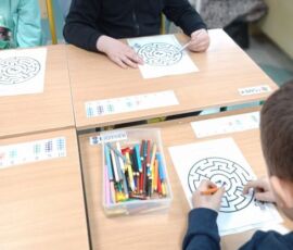 18.02.2026 r. uczniowie Specjalnego Ośrodka Szkolno-Wychowawczego im. M. Konopnickiej w Kluczborku wzięły udział w zajęciach czytelniczych pt. „Czytanie na dywanie”. Na samym początku dzieci wsłuchały się w teatrzyk Kamishibai pt. „Cztery pory roku” autorstwa Beaty Gabrat. A następnie przystąpiły do rozwiązywania kart pracy związanych z obecnie panującą porą roku, czyli zimą.