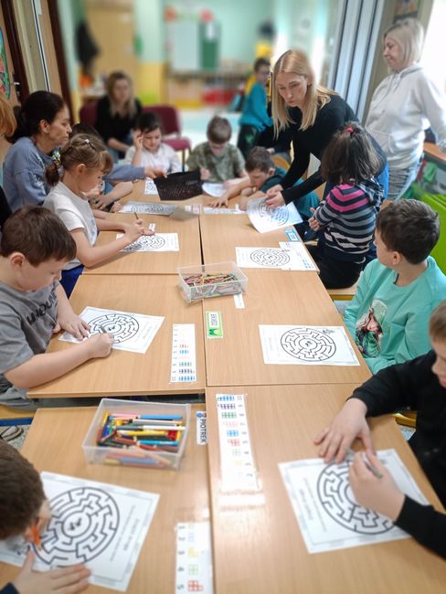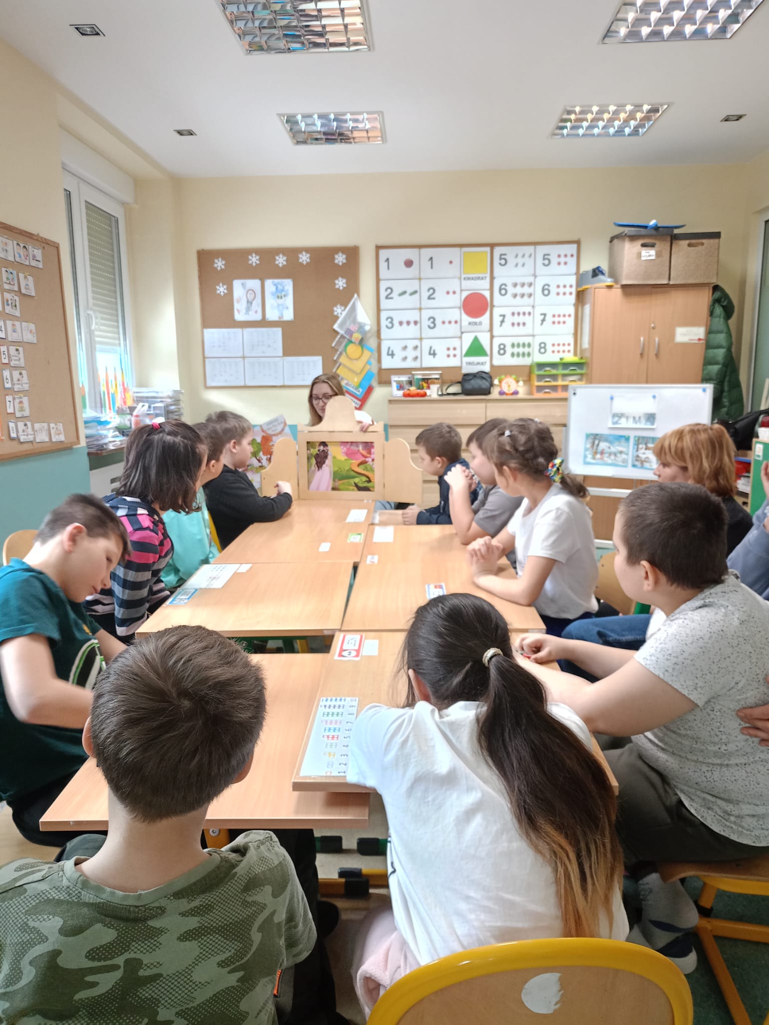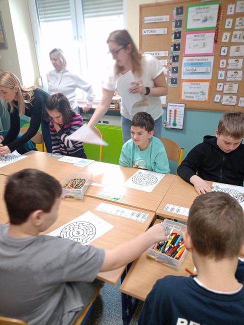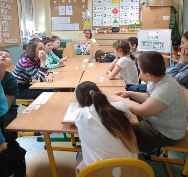 18.02.2026 r. uczniowie Specjalnego Ośrodka Szkolno-Wychowawczego im. M. Konopnickiej w Kluczborku wzięły udział w zajęciach czytelniczych pt. „Czytanie na dywanie”. Na samym początku dzieci wsłuchały się w teatrzyk Kamishibai pt. „Cztery pory roku” autorstwa Beaty Gabrat. A następnie przystąpiły do rozwiązywania kart pracy związanych z obecnie panującą porą roku, czyli zimą.