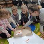 11 grudnia 2023 r. Pedagogiczną Bibliotekę Wojewódzką Filię w Kluczborku odwiedziły dzieci z grupy „Mróweczki” z Publicznego Przedszkola nr 1 w Kluczborku. Wzięły udział w zajęciach pt. Czytanie na dywanie. Podczas spotkania dzieci wysłuchały historii Fenka, który to bardzo lubił jeść słodycze i z tego powodu miał niemiły problem. Następnie wspólnie wykonaliśmy plakat dotyczący zdrowej i niezdrowej żywności. W trakcie zajęć nie zabrakło również zagadek związanych z jedzeniem. Na samym końcu dzieci wykonały karty pracy i razem z Fenkiem i jego przyjacielem Maksem wymyśliły zdrowy posiłek, który z chęcią każdy chciałby spróbować.