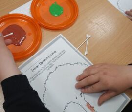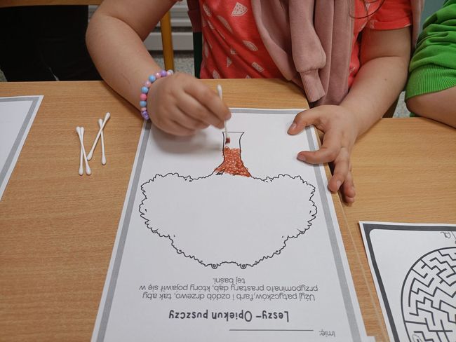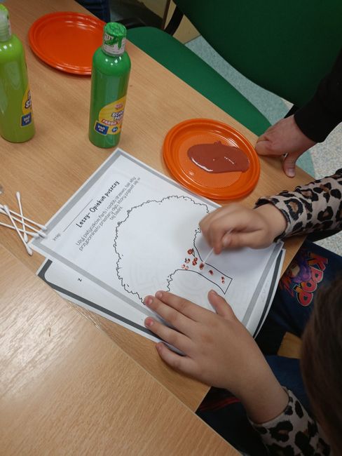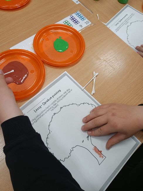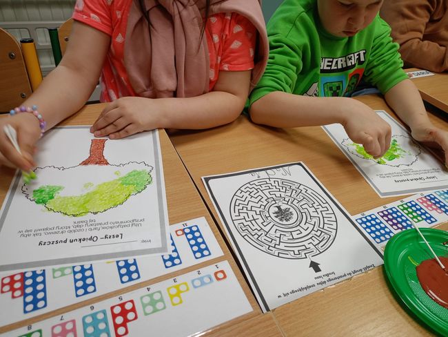 15.04.2026 r. uczniowie Specjalnego Ośrodka Szkolno-Wychowawczego im. M. Konopnickiej w Kluczborku wzięli udział w kolejnych zajęciach czytelniczych pt. „Czytanie na dywanie”. Na samym początku dzieci wsłuchały się w teatrzyk Kamishibai pt. „Leszy- opiekun puszczy” autorstwa Agaty Półtorak, a następnie przystąpiły do rozwiązywanie kart pracy związanych z poznaną baśnią słowiańską.