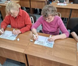Zajęcia „Fitness dla mózgu” mają już rok i z dumą możemy powiedzieć, że stały się ważnym elementem oferty naszej biblioteki. Przez ten czas udało się stworzyć wyjątkową przestrzeń, w której uczestnicy w miłej, wspierającej atmosferze mogą rozwijać swoje umiejętności poznawcze. Zajęcia zostały zaprojektowane z myślą o osobach starszych, które chcą zadbać o sprawność umysłu i dobre samopoczucie. Podczas spotkań seniorzy wykonują ćwiczenia wspierające pamięć, koncentrację oraz logiczne myślenie. Nie brakuje również elementów zabawy, pracy w grupach i rozmów, które sprzyjają integracji oraz budowaniu relacji.