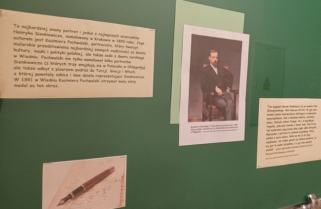 Na ekspozycji umieszczone zostały obrazy prezentujące oblicze noblisty w różnych etapach życia, Sienkiewicz zostaje przedstawiony nie tylko jako twórca, ale także jako człowiek – ukazane zostały zmiany w jego wyglądzie i wyrazie twarzy na przestrzeni lat. Możemy również obejrzeć wizerunki pisarza na wesoło, bowiem doczekał się on również wielu karykatur.