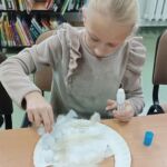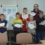 W trakcie spotkania uczniowie wykonywali karty pracy związane z tematem lekcji bibliotecznej, a następnie stworzyli piękne łabędzie na wzór bohatera czytanej baśni.