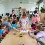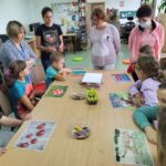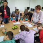 Zajęcia miały m.in. na celu doskonalenie wśród dzieci umiejętności słuchania ze zrozumieniem, wyrażania emocji, rozwiązywania problemów, porządkowania zdobytej wiedzy, wyciągania wniosków i odkrywania swoich talentów. W czasie spotkania uczniowie wysłuchali „Wiersza o kropce”, bawili się z książeczką Herve Tulleta „Naciśnij mnie”, układali puzzle, dostrzegali kropki towarzyszące nam w naszym codziennym życiu i otoczeniu, na które zwykle nie zwracamy uwagi oraz pobudzając wyobraźnię tworzyli kropkowe obrazki samodzielnie wymyślając i dorysowując do kropki pozostałą część.
