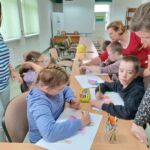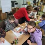 10 kwietnia 2024 r. uczniowie ze Specjalnego Ośrodka Szkolno-Wychowawczego w Kluczborku wzięli udział w warsztatach z cyklu Akademii Czytania – „Słucham, czytam, tworzę”. Podczas zajęć na kanwie picturebooka Iwony Chmielewskiej pt. „Kłopot” ćwiczyli umiejętności myślenia opartego o analogie i abstrahowania, twórczego rozwiązywania problemów, radzenia sobie ze stresem, wyciszania się i obserwowania własnych emocji oraz rozwijanie samokontroli i wytrwałości. Poznali wartość odwagi cywilnej i uczciwości, dowiedzieli się, że mimo tego, iż zrobiło się coś złego, mimo strachu przed konsekwencjami, warto przyznać się do winy i odważnie przeprosić. Była to również nauka, że z każdej sytuacji jest jakieś wyjście i każdy smutek można zamienić w radość.