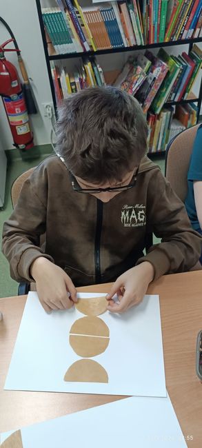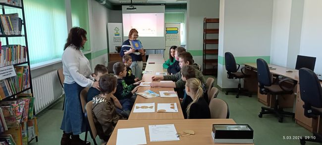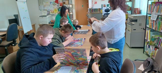 5 marca 2026 r. w Filii PBW w Kluczborku uczniowie ze Specjalnego Ośrodka Szkolno-Wychowawczego w Kluczborku wzięli udział w warsztatach czytelniczych pt. „ Książkowe historie – zabawy formą i treścią”. Zajęcia miały na celu zainteresowanie uczniów książką, pokazanie, że obcowanie z literaturą to przygoda, zabawa i radość. W trakcie spotkania do działań twórczych posłużyła książka Iwony Chmielewskiej pt. „Cztery zwykłe miski” udowadniając, że wyobraźnia nie ma granic, że przy pomocy czterech misek można poruszyć tematy zabawne i trudne, i które mogą być zaczątkiem do dyskusji na wielu płaszczyznach. Tytułowe miski wycięte z szarego papieru stają się tym wszystkim czego akurat potrzebujemy – mogą być księżycem, budzikiem, parasolem, czapką, czołgiem, mogą być lekcją pokory, bo ktoś na co dzień ma miskę pustą, a inny przepełnioną. Uczniowie wykazując się inwencją twórczą bardzo chętnie zaprojektowali swoje strony do tej opowieści układając z „misek” obrazy i dorysowując niezbędne elementy ilustracji.