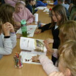 Uczniowie wzięli również udział w krótkim happeningu czytelniczym, a mianowicie przed Biblioteką rozwinęli leporello – najdłuższy katalog dobrych książek zatytułowany ”Podróż po krainie książek” , a który powstał dzięki młodszym i starszym czytelnikom rekomendującym innym książki warte przeczytania.