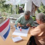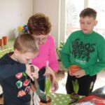 Pierwszym przystankiem na trasie literackich podróży była Holandia. W trakcie spotkania przedstawiono obszerną prezentację multimedialną, która zawierała wiele ciekawych informacji dotyczących Holandii. Seniorzy oraz uczniowie mieli okazję zapoznać się z najważniejszymi informacjami o kraju, atrakcjami turystycznymi, ciekawostkami, a także najważniejszymi przedstawicielami niderlandzkiej literatury i sztuki. W drugiej części zajęć, w ramach integracji międzypokoleniowej,  seniorzy wspólnie z uczniami układali puzzle, obrazujące najciekawsze miejsca w Holandii, które warto zwiedzić. Zwieńczeniem spotkania było wspólne sadzenie kwiatów, gdyż nie od dziś wiadomo, że Holandia to kwiaciarnia Europy.