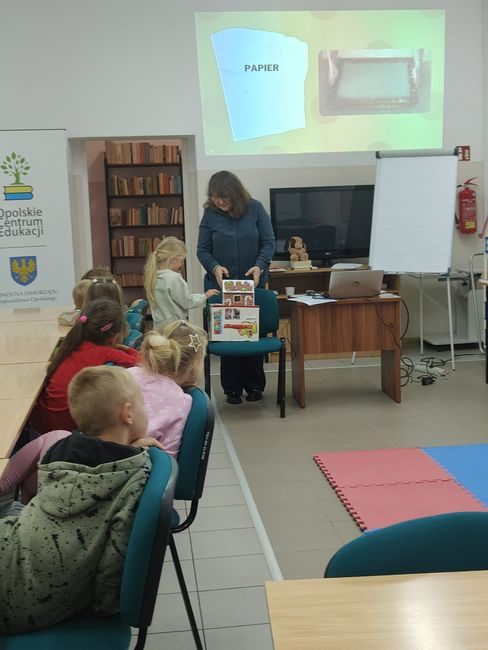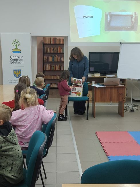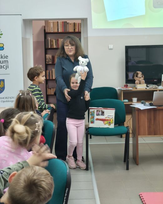 W dniach 7 i 10 października 2025 r. w Filii Pedagogicznej Biblioteki Wojewódzkiej w Nysie dzieci z Przedszkola nr 1 oraz Przedszkola „Bajkowy Świat” w Nysie uczestniczyły  w zajęciach czytelniczych z elementami biblioterapii poświęconych wartościom, które zdobywamy i rozwijamy czytając książki. Podczas spotkania przedszkolaki z zainteresowaniem wysłuchały opowieści jak czytanie książek stało się drogą do sukcesów zawodowych i spełnienia marzeń małego chłopca. Podczas zajęć dzieci uczestniczyły w różnych zabawach i chętnie rozwiązywały zagadki o ulubionych bohaterach baśni i bajek. Zajęcia przebiegały w miłej atmosferze.
