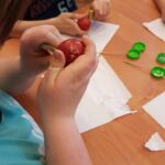 Uczestnicy zajęć (trzy grupy) poznali zwyczaje i tradycję świąt Wielkanocnych, nauczyli się trzech technik zdobienia jaj: rytowniczej (kroszonki), pisania woskiem – batik oraz oklejania sitowiem.