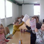 9 listopada 2022 r. uczniowie ze Specjalnego Ośrodka Szkolno-Wychowawczego im. M. Konopnickiej w Kluczborku z kl. 2, 3 b ZET oraz kl. 3 a ZET uczestniczyli w kolejnych zajęciach czytelniczych z elementami biblioterapii z cyklu „Bajeczne mikstury na różne problemy”, których celem jest stymulowanie rozwoju, pobudzanie aktywności dziecka, wspomaganie rozwoju dziecka w sferach społecznych, wychowawczych i edukacyjnych oraz stabilizacja emocji. Spotkanie pt. „Strach ma wielkie oczy” poświęcone było poznaniu emocji lęku i strachu. Uczniowie wysłuchali utworów literackich, rozpoznawali emocje przedstawione za pomocą piktogramów oraz obrazków sytuacyjnych, a następnie wykonywali prace plastyczne.