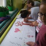 27.10.2017 r. – To już ostatnie zajęcia w ramach konkursu grantowego Opolskie EDUKO 2017. W pierwszej części zajęć – żywiołowe rysowanie pastelami na tkaninie. Inspiracją dla dzieci było ich własne doświadczanie szczęścia oraz treści z bajek poznawanych na warsztatach.