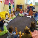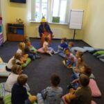 13 września br. odbyły zajęcia czytelnicze z elementami biblioterapii w których udział wzięły dzieci 4/5- letnie.Tematem dzisiejszego spotkania było zapoznanie się z problemem kłamstwa i skutków takiego działania. Dzieci zapoznały się z opowiadaniem M. Jaworczakowej pt. ,,Nikt nie wie”, wykonały ćwiczenia ruchowe z wykorzystaniem elementów metody Weroniki Sherborne oraz wzięły udział w zabawach dydaktycznych pt. ,,Prawda czy fałsz”, ,,Lustro”.