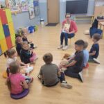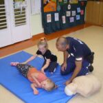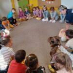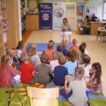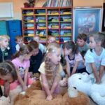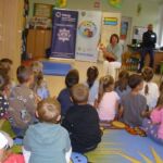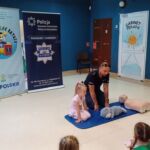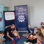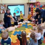 Dzieci 5-6 -letnie brały udział w zajęciach czytelniczych pt. „Pierwsza pomoc – TY też możesz zostać małym ratownikiem” – wysłuchały bajkę Izabeli Michty pt. „Łukasz ratuje misia, czyli jak udzielać pierwszej pomocy”, która była punktem wyjściowym do ćwiczeń praktycznych z ratownictwa, które przeprowadzili policjanci. Przedszkolaki najpierw na swoich misiach, a następnie na fantomie uczyły się reagowania w nagłych przypadkach, udzielania pierwszej pomocy oraz utrwalały sobie numer alarmowy służb ratunkowych. Na zakończenie wszyscy mali „ratownicy” otrzymali pamiątkowe dyplomy i medale oraz plecaczki z logo akcji.