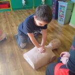 W ramach kontynuacji projektu „Przedszkolak ratuje” w marcu i kwietniu br. we współpracy z Komendą Powiatową Policji w Nysie oraz Studenckim Kołem Naukowym Medycyny Ratunkowej COR Państwowej Akademii Nauk Stosowanych w Nysie, zostały przeprowadzone zajęcia w 20 przedszkolach z powiatu nyskiego dla 419 dzieci. W czasie spotkań przedszkolaki uczyły się jak należy postąpić aby udzielić komuś pierwszej pomocy w nagłych wypadkach. Dzieci z dużym zaangażowaniem brały udział w prowadzonych warsztatach.