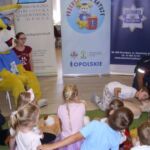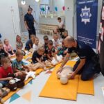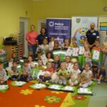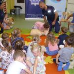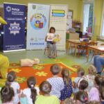 19, 21 i 22 września 2023 r. we współpracy z Komendą Powiatową Policji w Kluczborku w ramach projektu „Przedszkolak ratuje” realizowane były zajęcia czytelnicze pt. „Pierwsza pomoc – TY też możesz zostać małym ratownikiem”. Dzieci 5 i 6-letnie z Publicznego Przedszkola nr 1, Publicznego Przedszkola nr 7 oraz z Niepublicznego Przedszkola „Tęczowa Dolina” w Kluczborku uczyły się reagowania w nagłych przypadkach, udzielania pierwszej pomocy oraz utrwalały sobie numer alarmowy służb ratunkowych. Przedszkolaki wysłuchały bajkę Izabeli Michty pt. „Łukasz ratuje misia, czyli jak udzielać pierwszej pomocy”. Była ona punktem wyjściowym do ćwiczeń praktycznych z ratownictwa, które przeprowadził policjant. Dzieci najpierw na swoich misiach, a następnie na fantomie uczyły się udzielania pierwszej pomocy. Na zakończenie wszyscy mali „ratownicy” otrzymali pamiątkowe dyplomy i medale oraz plecaczki z logo akcji.