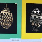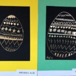 Wśród prezentowanych technik uczniowie doskonale wskazywali zdobienia charakterystyczne dla naszego regionu opolskiego, czyli kroszonki (kraszanki) – farbowane jaja kurze lub gęsie, na których za pomocą ostrego narzędzia wyskrobywane były wzory.