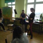 Cygańskiej duszy bliski jest śpiew i muzyka. Poczuliśmy się jak Cyganie wspólnie śpiewając i grając w romskich rytmach. Głównym tematem zajęć była wywodząca się z kultury cygańskiej bajka „Zaczarowana skrzynka”, czyli o tym jak powstały skrzypce.
