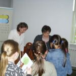 Podczas spotkania Pani Renata Piątkowska przedstawiła swoją książkę pt. ” Wszystkie moje mamy”, która jest poświęcona Irenie Sendlerowej – bohaterskiej kobiecie, która podczas wojny, codziennie narażając swoje życie, uratowała z warszawskiego getta 2,5 tysiąca żydowskich dzieci. Młodzi słuchacze dowiedzieli się, czym było getto i dlaczego osoby wyznania mojżeszowego musiały podczas wojny nosić opaski z gwiazdą. Z ogromnym zainteresowaniem wysłuchali przejmującej opowieści o piekle codziennego życia w getcie, o sposobach wyprowadzania z niego dzieci, o tragedii matek, które, chcąc ratować swoje dzieci przed śmiercią głodową, decydowały się na oddawanie ich w obce ręce z nadzieją, że dzieciom uda się przeżyć wojnę.
