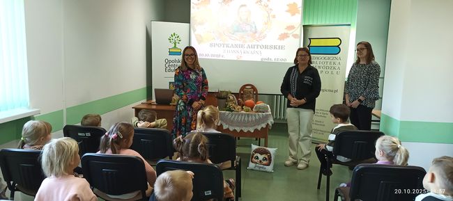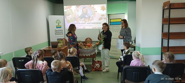 20 października 2025 r. w Pedagogicznej Bibliotece Wojewódzkiej w Filii w Kluczborku odbyło się spotkanie z Hanną Kwaśną– autorką książki dla dzieci pt. „Jeżynka”. Podczas spotkania uczestnicy mogli dowiedzieć się sporo ciekawostek z życia jeży. Ponadto Pani Hania opowiedziała uczestnikom skąd wziął się pomysł na napisanie ”Jeżynki” i kto był dla niej inspiracją. W trakcie spotkania autorka również zaznajomiła dzieci z pracą pisarza i podpowiedziała jak samemu można wydać książkę.