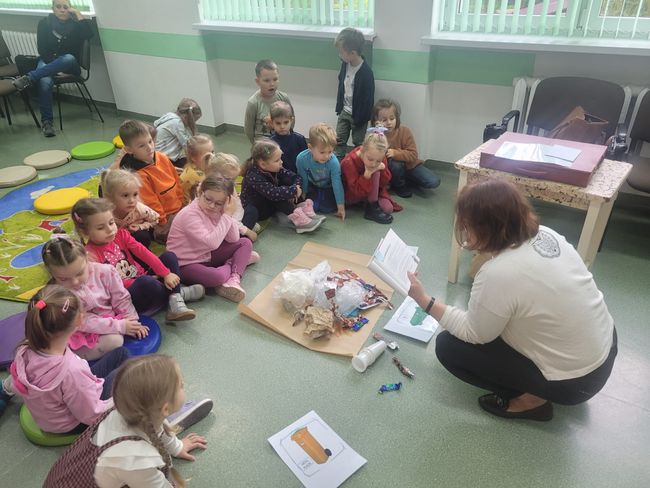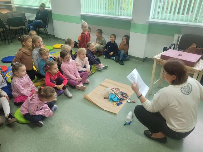 17 października 2025 roku w Filii PBW w Kluczborku odbyły się zajęcia czytelnicze pt. „Spotkanie z eko-bajką”, w których udział wzięły 5-latki z Publicznego Przedszkola nr 1 w Kluczborku. Dzieci podczas warsztatów obejrzały krótką inscenizację oraz wysłuchały utworów literackich, poprzez które poznawały piękno natury, uczyły się właściwego postępowania z odpadami, a także uczyły się ponownego wykorzystywania różnych przedmiotów codziennego użytku, w celu zmniejszenia ilości wytwarzanych śmieci. Zajęcia uświadomiły dzieciom, że wszyscy jesteśmy odpowiedzialni za środowisko naturalne i że recykling jest istotny dla nas i naszej planety. Podczas spotkania dzieci brały udział w zajęciach ruchowych oraz przygotowały prace plastyczne.