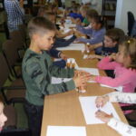 5 października 2021 r. w Pedagogicznej Bibliotece Wojewódzkiej Filii w Kluczborku odbyły się zajęcia czytelnicze z elementami biblioterapii z cyklu „Bajeczne mikstury na różne problemy” pt. „Strach ma wielkie oczy”, w których wzięli udział uczniowie z kl. I D z Publicznej Szkoły Podstawowej im. J. Korczaka w Kluczborku. Podczas spotkania dzieci dowiedziały się o znaczeniu strachu w życiu człowieka, poznawały sposoby pokonywania strachu oraz zmniejszania nieprzyjemnych odczuć wywołanych uczuciem lęku. Słuchając utworów literackich, biorąc udział w zabawach, ćwiczeniach relaksacyjnych oraz wykonując prace plastyczne „oswajały” swoje lęki.