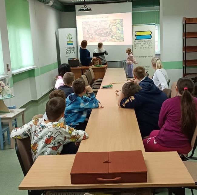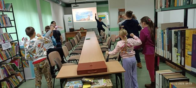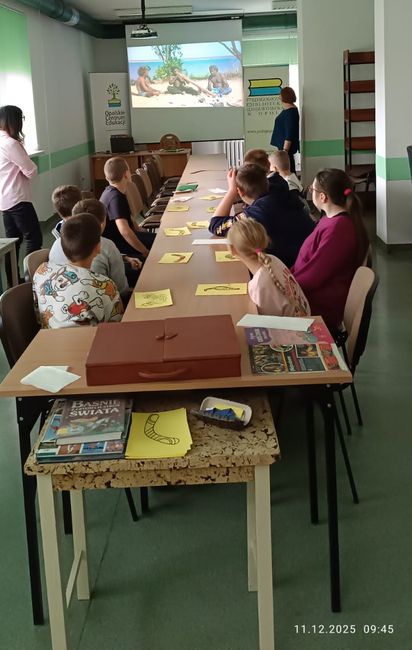 11 grudnia 2025 r. uczniowie klasy II i III ze Specjalnego Ośrodka Szkolno-Wychowawczego w Kluczborku rozpoczęli cykl warsztatów czytelniczych zatytułowany „Z bajką, baśnią i legendą przez kontynenty”. Na tym pierwszym spotkaniu udaliśmy się w literacką podróż do Australii. Oprócz poznania baśni aborygeńskich uczniowie mieli wiele aktywności: uczyli się odszukiwania kontynentu na mapie, dowiedzieli się różnych ciekawostek ze świata zwierząt, a także poznali „w pigułce” kulturę i zwyczaje jego rdzennych mieszkańców. Zajęciom towarzyszyła zabawa ruchowa oraz tworzenie obrazów metodą kropkową.