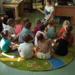 6 czerwca br. PBW Filię w Kluczborku odwiedziły dzieci z Niepublicznego Przedszkola „Tęczowa Dolina” w Kluczborku. Wzięły one udział kolejnych zajęciach z cyklu: Z Kicią Kocią poznaję świat…Tym razem podczas lekcji bibliotecznej rozmawialiśmy o życiu na wsi. Na samym początku dzieci wysłuchały książki A. Głowińskiej „Kicia Kocia na traktorze”, następnie wzięły udział w zabawie słuchowo-rytmicznej i klaskając dzieliły nazwy wiejskich zwierzątek na sylaby. Podczas lekcji nie mogło również zabraknąć zagadek i kart pracy, które dzieci tak uwielbiają.