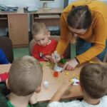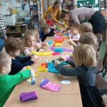 4 grudnia br. Pedagogiczną Bibliotekę Wojewódzką Filię w Kluczborku odwiedziły dzieci z Niepublicznego Przedszkola „Tęczowa dolina” w Kluczborku, które uczestniczyły w kolejnych zajęciach z cyklu „Z Kicią Kocią poznaję świat…”. Tym razem tematem przewodnim była zima i Święta Bożego Narodzenia. Na samym początku dzieci wysłuchały książki A. Głowińskiej „Kicia Kocia i Nunuś- Czekamy na święta”, następnie rozmawialiśmy o świątecznych tradycjach i rozwiązywaliśmy zagadki. Później przedszkolaki wykonały piękne bombki z Kicią Kocią oraz świąteczne kolorowanki.