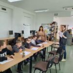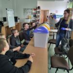 24 kwietnia br. Pedagogiczną Bibliotekę Wojewódzką Filię w Kluczborku odwiedzili uczniowie ze Specjalnego Ośrodka Szkolno-Wychowawczego im. M. Konopnickiej w Kluczborku. Wzięli oni udział w kolejnych zajęciach z cyklu… „Z Kicią Kocią poznaję świat…”. Na samym początku dzieci wysłuchały zagadki muzycznej, aby odgadnąć temat zajęć. Oczywiście poradzili sobie bez trudu i mogliśmy przejść do tematyki związanej z ekologią i segregacją śmieci. Uczniowie podczas spotkania poznali nowe słowo „recykling” i dowiedzieli się jaki jest to ważny proces dla naszej Ziemi. Ponadto rozmawialiśmy o tym, że nasza planeta obchodzi dwa święta związane z ekologią, a mianowicie właśnie Dzień Recyklingu, który przypada na 18 marca oraz Dzień Ziemi wypadający 22 kwietnia. Następnie przeszliśmy do zabawy polegającej na posegregowaniu śmieci i umieszczeniu ich w odpowiednich pojemnikach na śmieci. Potem uczniowie wykonali kartę pracy związaną z tematem zajęć oraz stworzyli piękną pracę plastyczną, dzięki której poćwiczyły motorykę małą.
