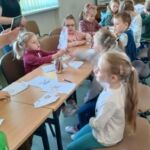 Dodatkowym punktem spotkania było zapoznanie dzieci i nauczycieli z materiałami edukacyjnymi (grami, puzzlami oraz książeczkami) na temat Unii Europejskiej, której święto było obchodzone w tym dniu.