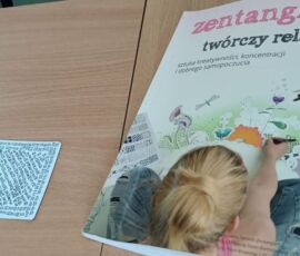 25 marca 2026 r. uczniowie kl. V TC z Zespołu Szkół Licealno-Technicznych w Kluczborku podczas warsztatów w Filii PBW w Kluczborku poznali technikę artystycznego odprężania się – Zentangle®., którą opatentowali amerykańcy lekarze: Rick Roberts i Maria Thomas. Młodzież podczas zajęć oddała się twórczemu relaksowi, stworzyła efektowne grafiki ćwicząc jednocześnie wyobraźnię i koncentrację.